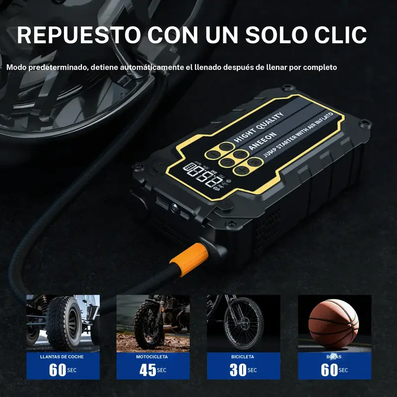 Producto de alta calidad. Los materiales son duraderos, el compresor infla los neum¨¢ticos con precisi¨®n, y el arrancador es fiable en cualquier situaci¨®n. Muy contento.