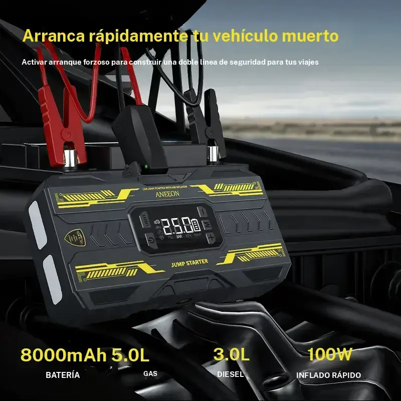 Must-have para cualquier conductor. La combinaci¨®n de arrancador y compresor es genial. Funciona con diferentes tipos de coches, y el display es claro para ver la presi¨®n de los neum¨¢ticos.